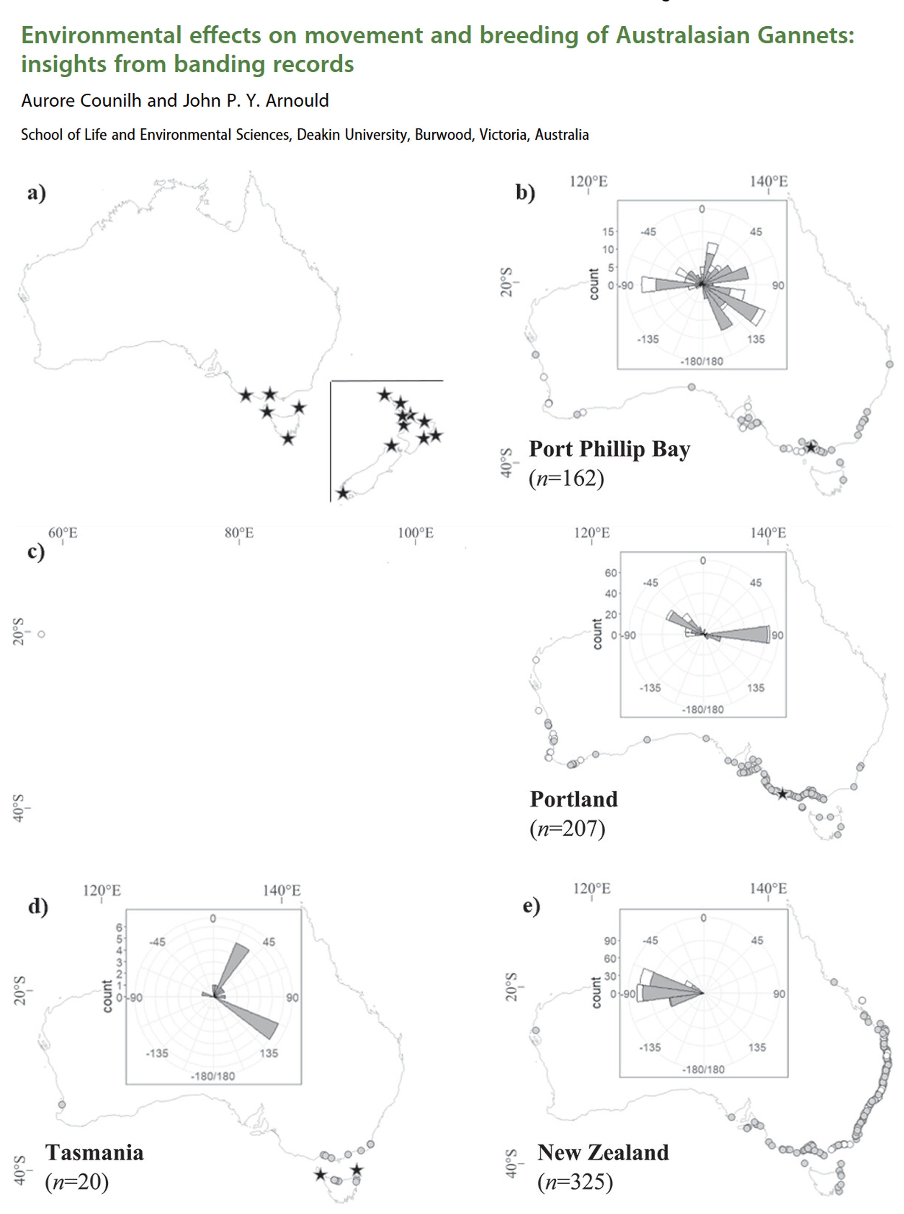 Example study: Environmental effects on movement and breeding of Australasian Gannets: insights from banding records