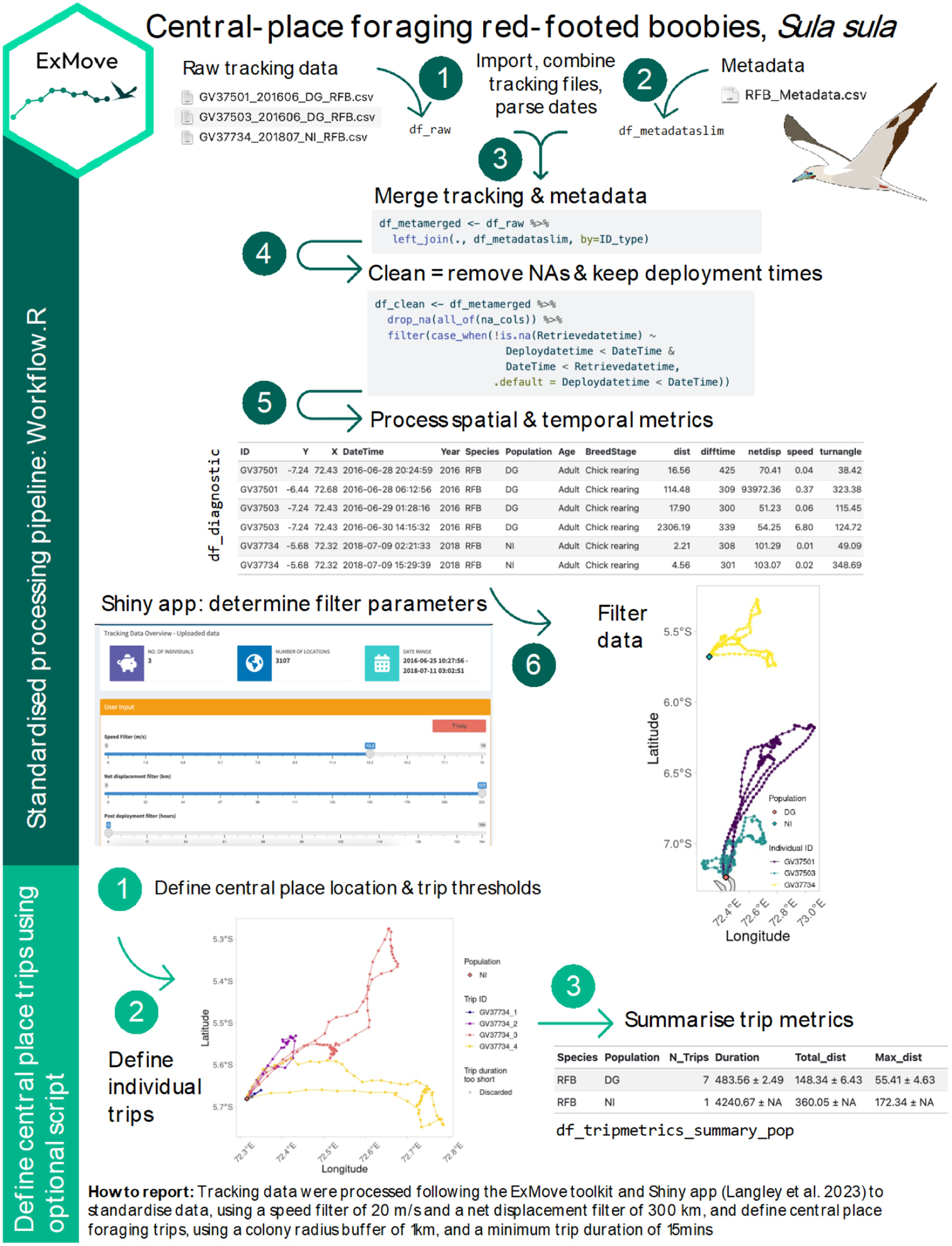 We will loosely follow the cleaning and processing workflow of raw data from ExMove tutorial, but there are others out there. For example, Gupte et al. (2021)