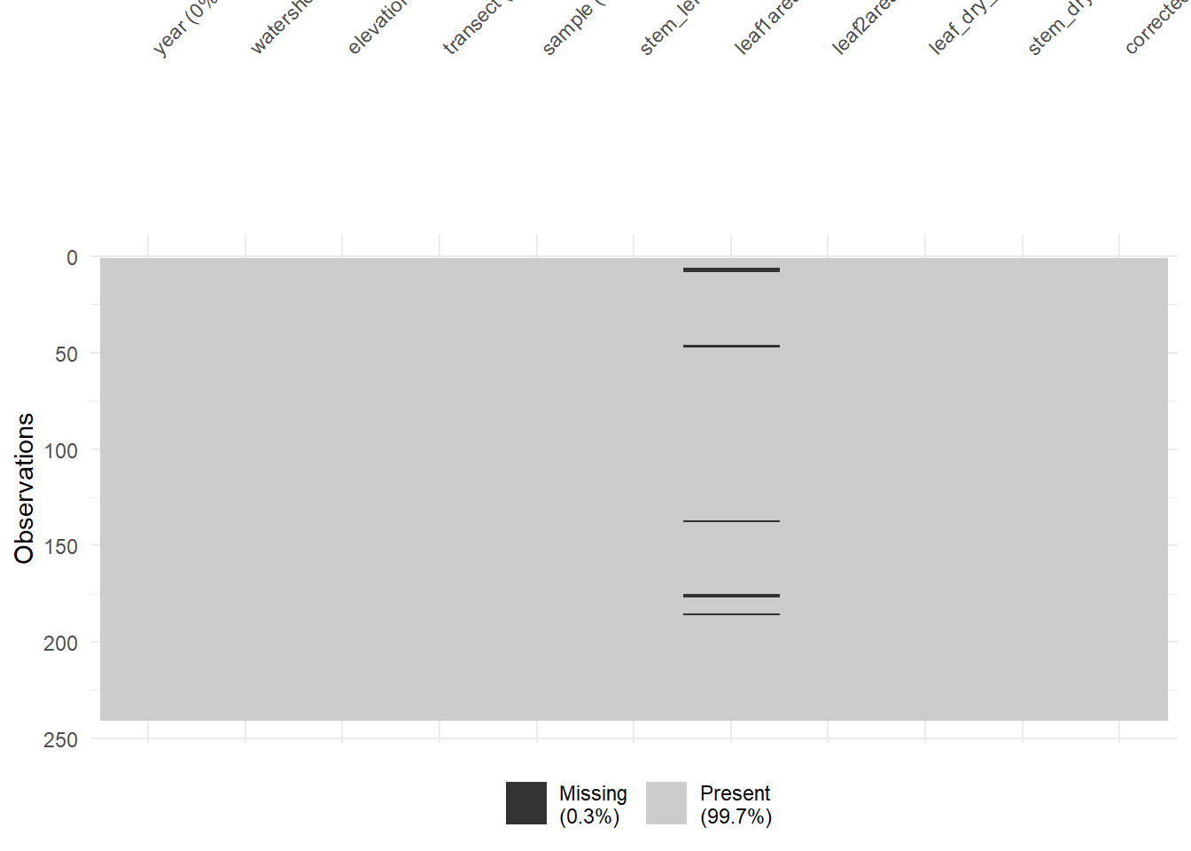 When you have completed the assessment, save your plant_task_data_clean data as a csv file. The plant_task_data_clean should have the NA’s and outliers removed, and watershed transect changed to factor.