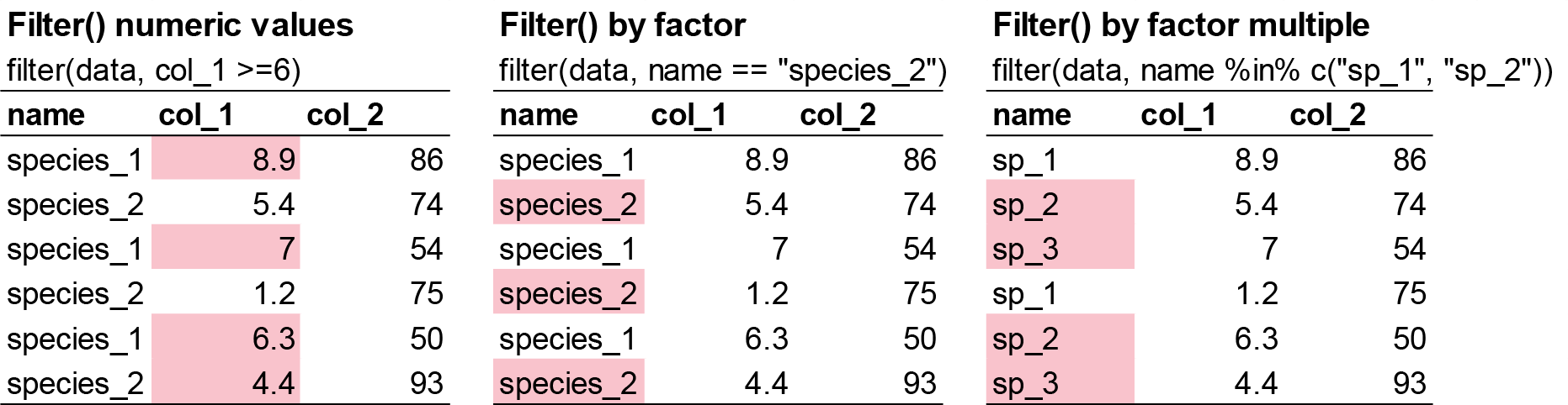filter(). e.g. keeping rows with values higher than 100. - Reorder the rows