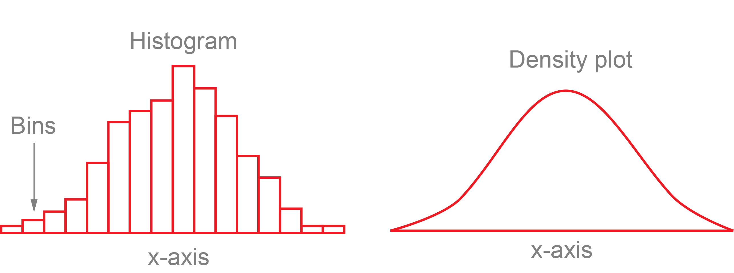A histogram and density plot takes as input a numeric variable only. The variable is cut into several bins, and the number of observation per bin is represented by the height of the bar. It is possible to represent the distribution of several variable on the same axis using this technique.
