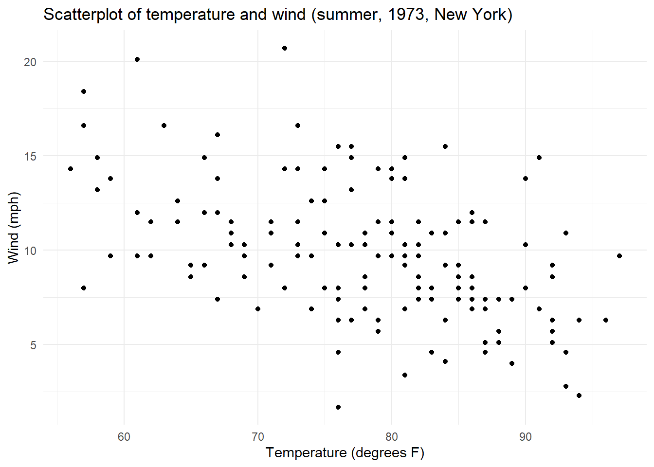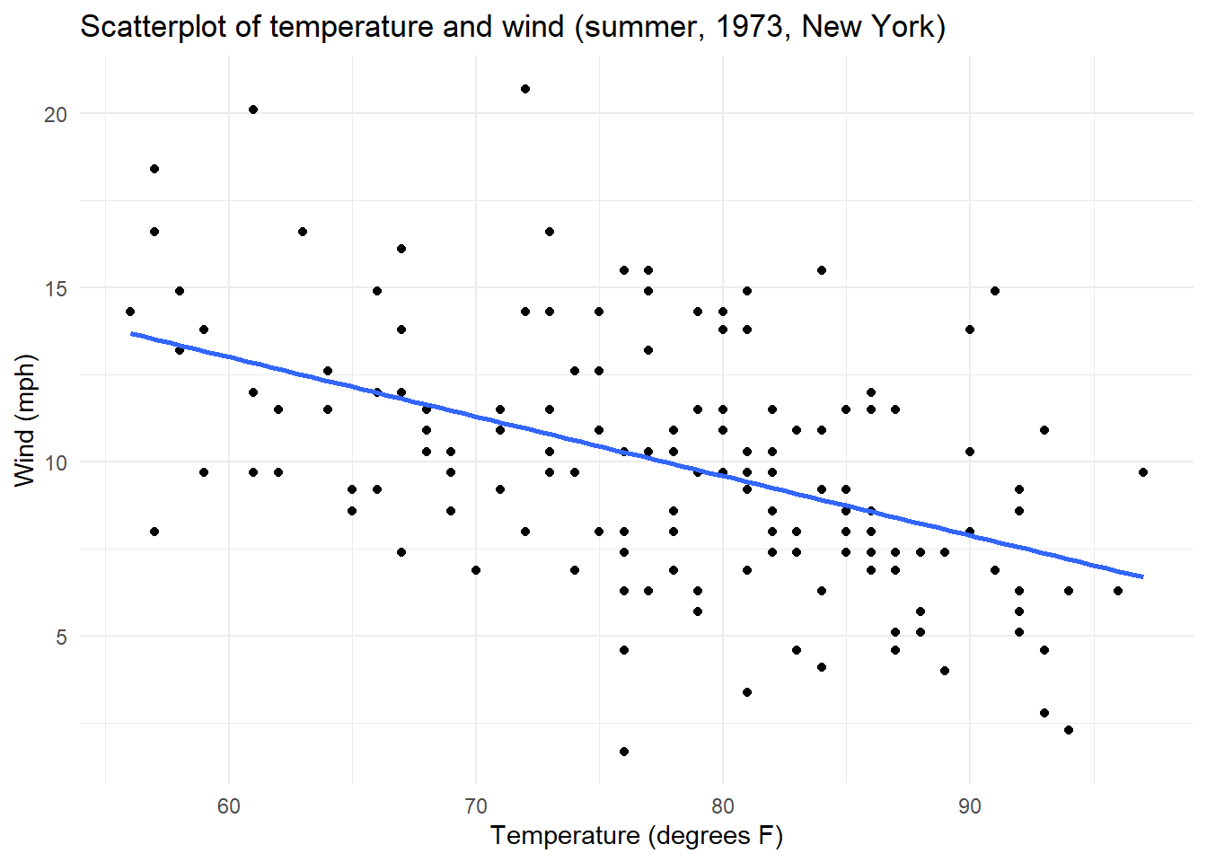 labs(title = "Scatterplot of temperature and wind (summer, 1973, New York)",