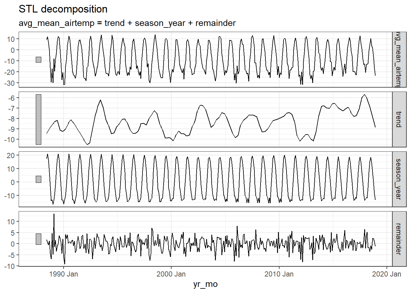 library(feasts) # extension of tsibble to produce time series features, decompositions, statistical summaries and convenient visualisations.