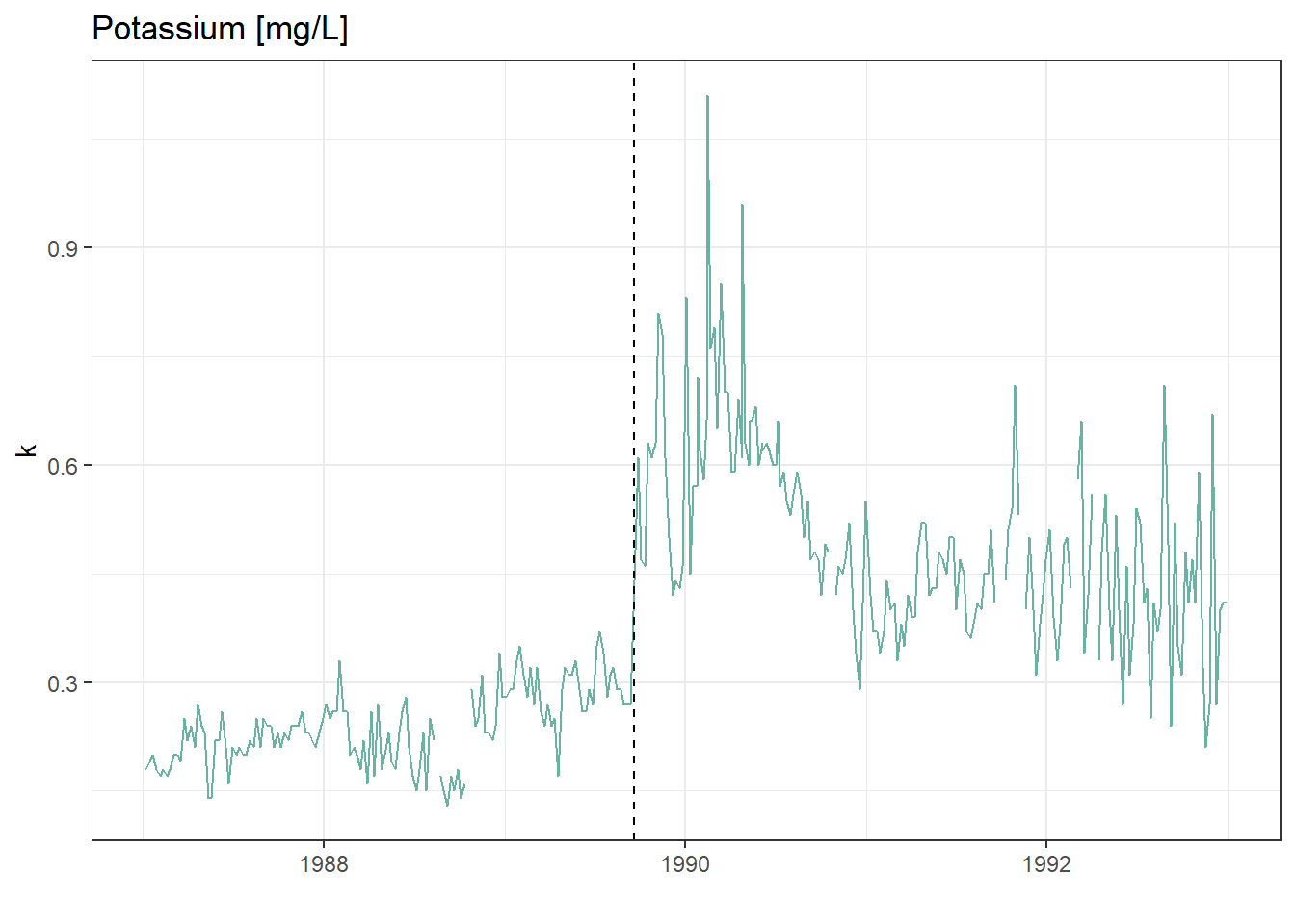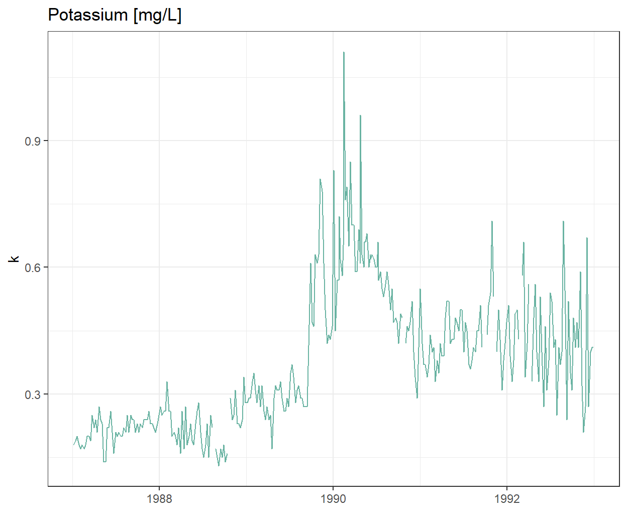In this first example, We will use the luq_streamchem data to illustrate how to handle and plot longtitudinal survey data from the lterdatasampler R package. This part will teach you how to explore change points in time-series, and how to use long format to create facet plots.